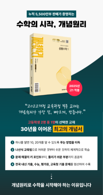 개념원리 고등 공통수학 1(2025)은 수학의 기초를 다지고 문제 해결 능력을 키우기 위한 최고의 교재입니다. 예비 고1 학생들에게 강력히 추천합니다.