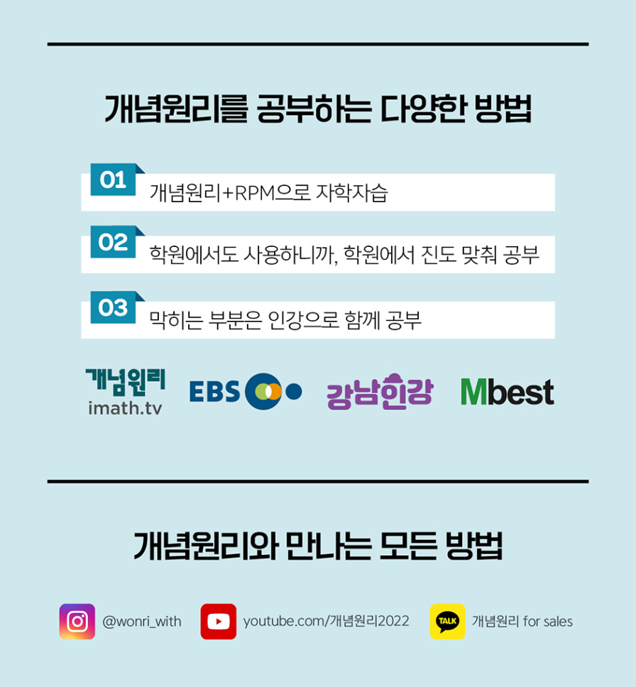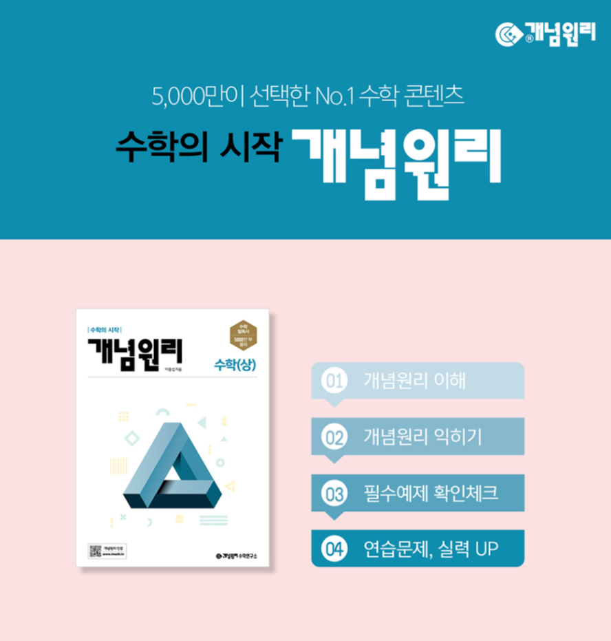 수학 학습의 새로운 시작 "개념원리"는 수학을 어렵다고 생각하는 사람들에게 새로운 시작을 제공합니다. 개념과 원리를 확실히 이해하고자 하는 분들은 이 교재를 통해 자신의 능력을 향상시킬 수 있을 것입니다. 함께 수학을 공부하며 새로운 도전에 나서보시기를 바랍니다.