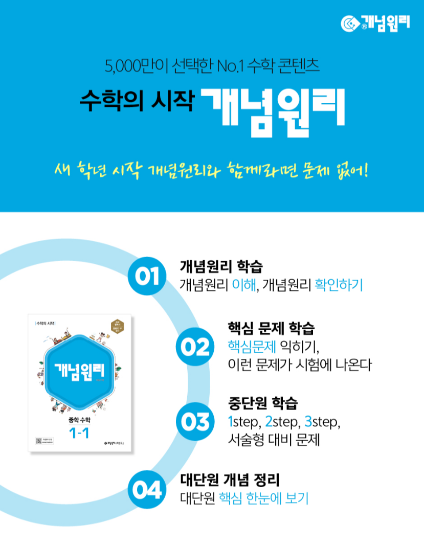 - 사고력 및 창의력 향상: 개념원리에 기반한 독특한 교수법은 학생들의 사고력, 응용력, 창의력을 키울 수 있도록 설계되었습니다. 이는 새 교육과정에서 요구하는 중요한 역량입니다.