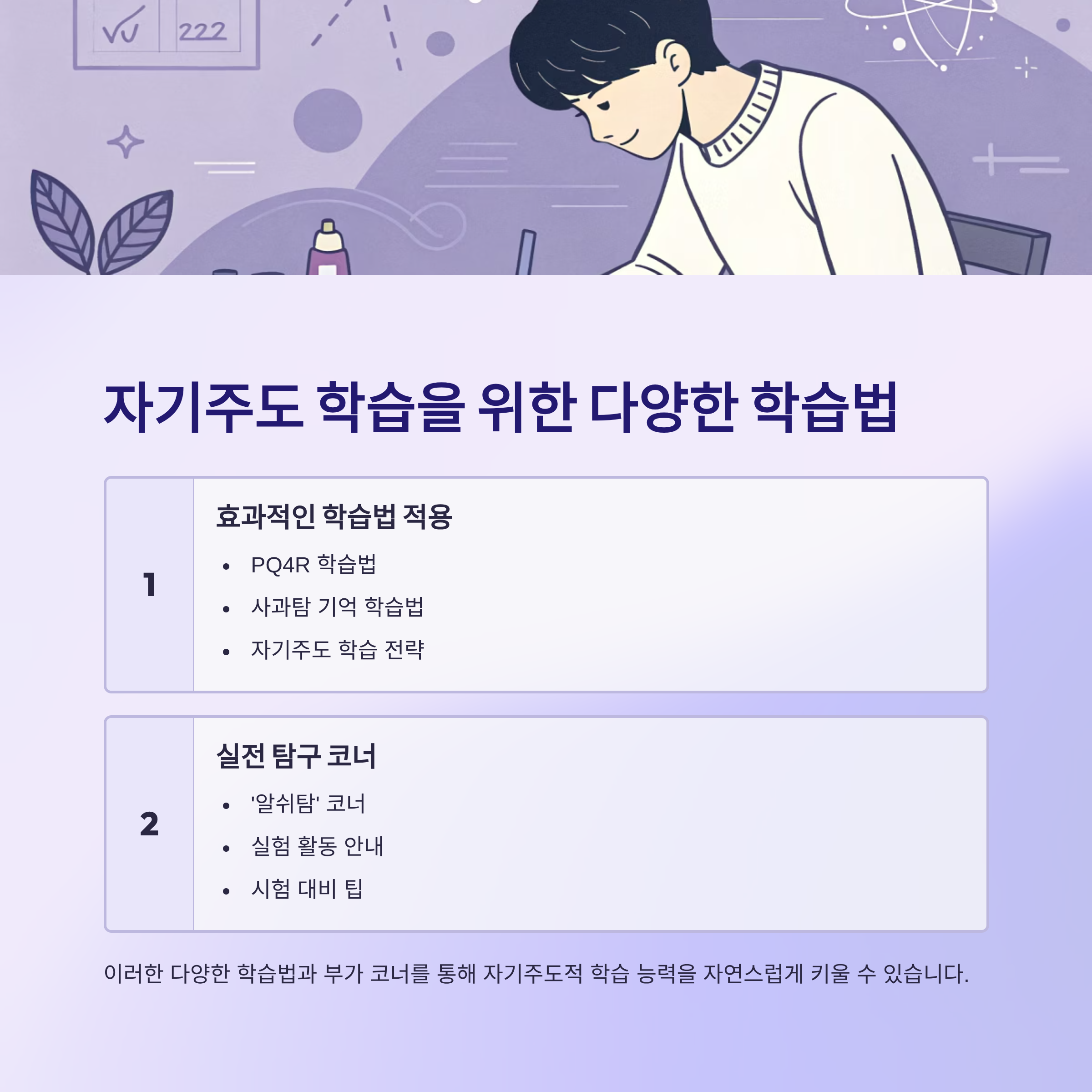 다양한 학습법과 부가 코너로 자기주도성 강화
