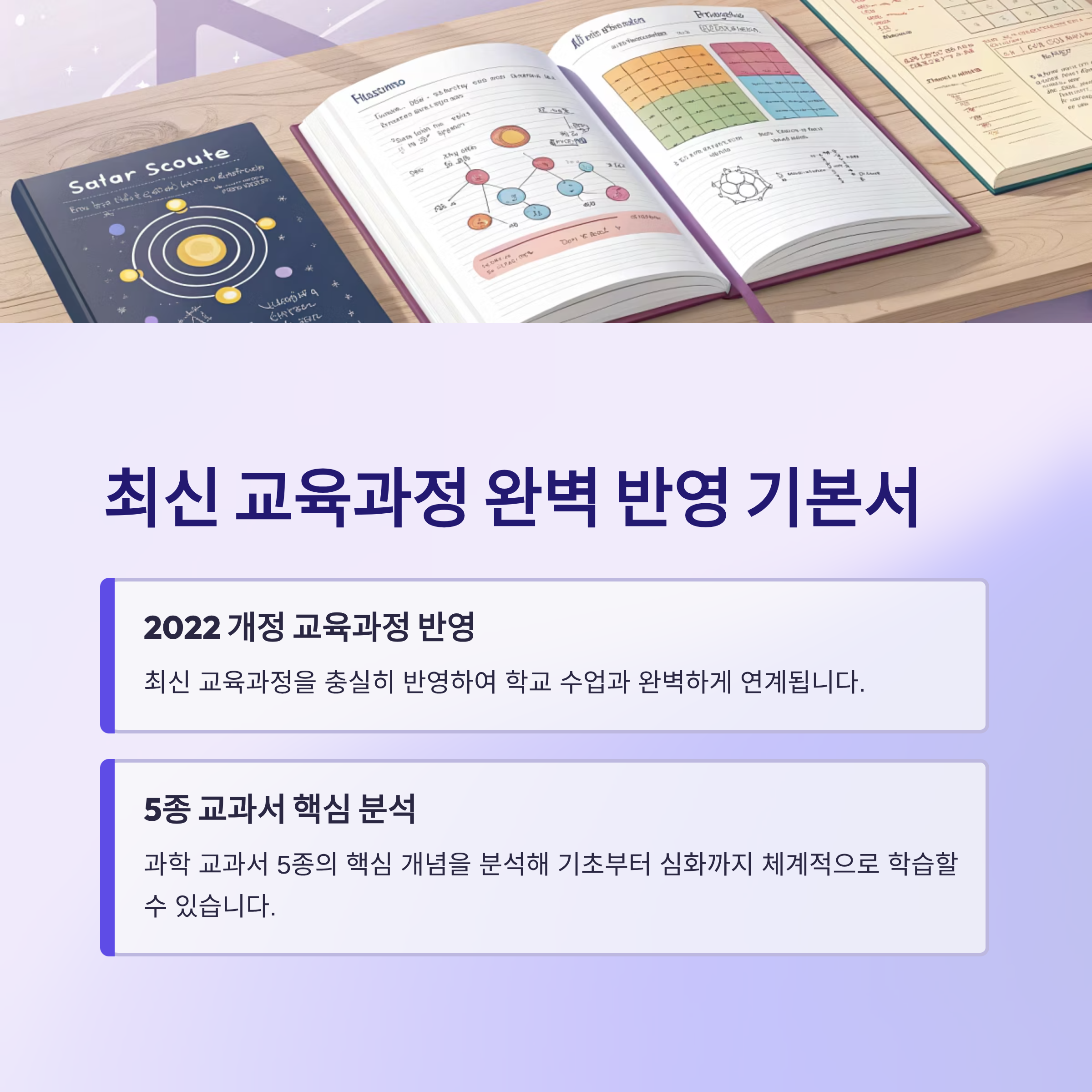 학교 수업과 완벽하게 연계할 수 있습니다. 과학 교과서 5종의