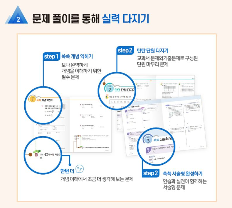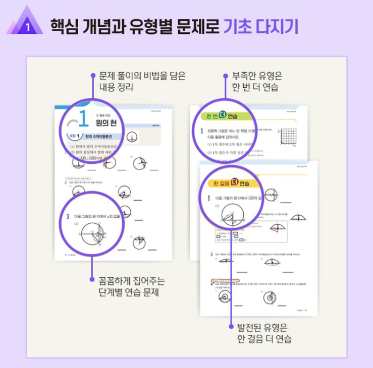- 반복 연습을 통한 학습 효과: 개념을 학습한 후 바로 유형별로 문제를 풀어보며 복습할 수 있어, 반복 학습을 통해 개념을 확실히 다질 수 있습니다.