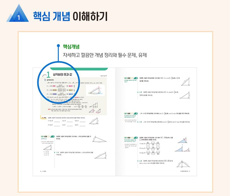 개념편은 수학의 기본 개념을 쉽게 이해할 수 있도록 설명하며, 각 개념을 확인할 수 있는 문제도 함께 제공됩니다. 특히 서술형 문제에 대한 접근법을 자세히 설명하여 학생들이 서술형 문제를 풀 때 자신감을 가질 수 있도록 도와줍니다.