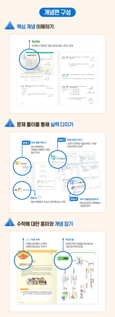 - 개념편: 깔끔한 개념 정리와 문제 풀이로 개념을 쉽게 이해할 수 있도록 돕습니다.