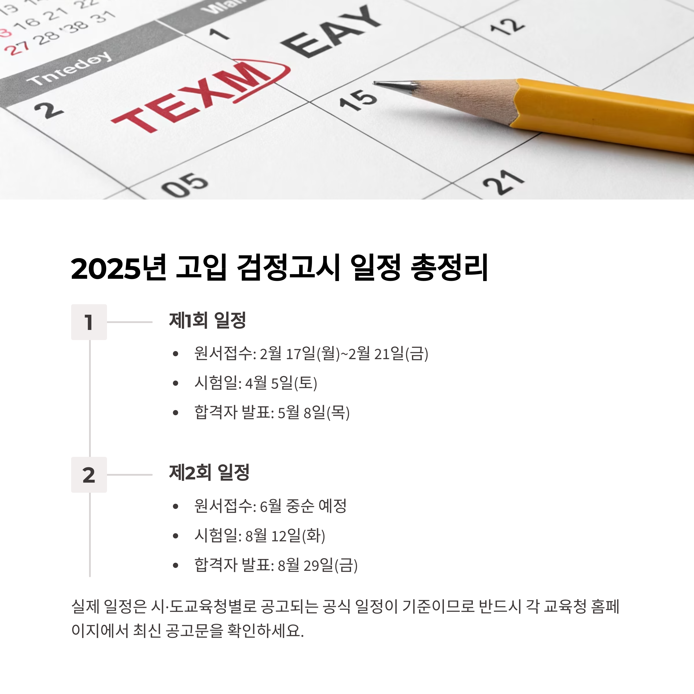 2025년 고입 검정고시 일정 총정리