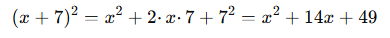 공식을 몰랐다면 (x + 7)(x + 7)로 전개해야 하지만, 공식 덕분에 한 줄로 끝낼 수 있습니다.