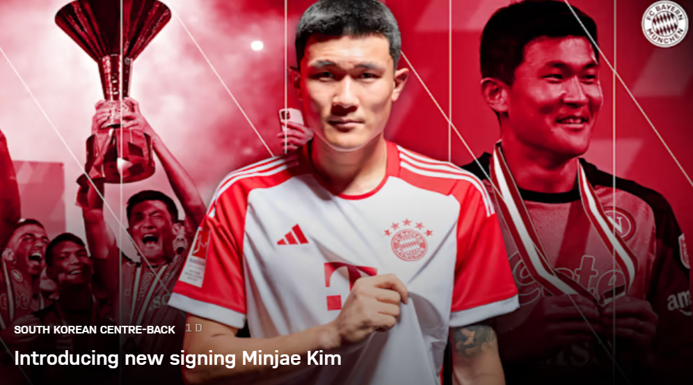 한국 축구 대표팀 수비수인 김민재가 독일 분데스리가 클럽인 바이에른 뮌헨과 5년 계약을 맺었습니다. 바이에른 뮌헨은 김민재가 등번호 3번을 달게 될것이라고 발표했습니다. 현지 매체에 따르면 김민재는 1200만 유로(약 172억원)의 연봉을 받게 될 것으로 전해졌으며, 뮌헨은 이적료 5000만 유로(약 715억원)를 전 소속팀인 나폴리에 지불한 것으로 알려졌습니다. 이로써 김민재는 아시아 출신 선수 중 최고 이적료인 손흥민의 기록을 갈아치웠습니다.