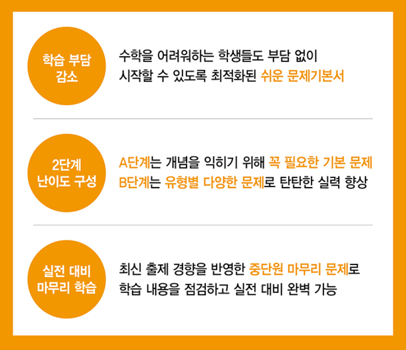 - 불필요한 내용 제거: 교과서에서 다루는 어려운 유형도 난이도를 조절해 부담 없이 익힐 수 있도록 구성했습니다.