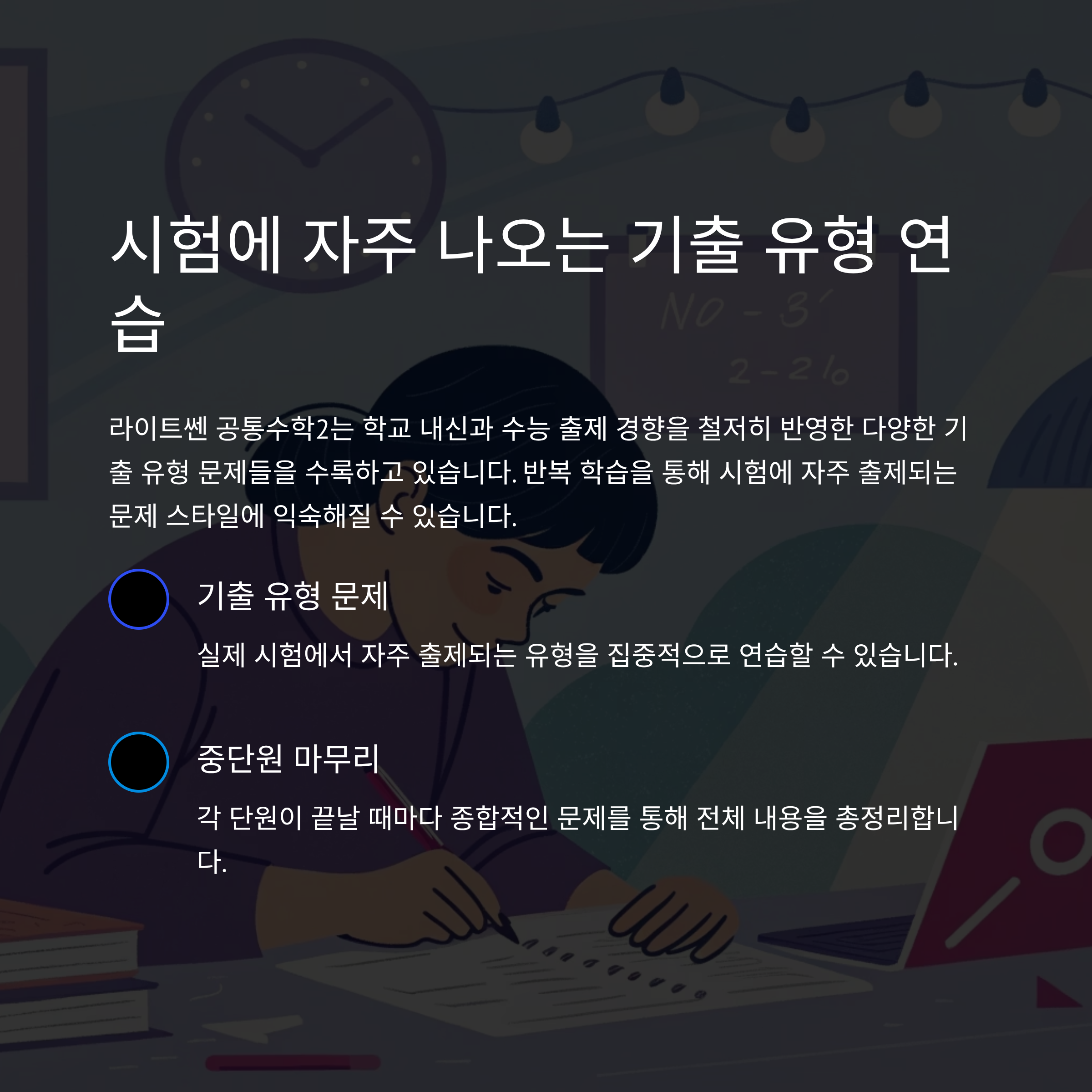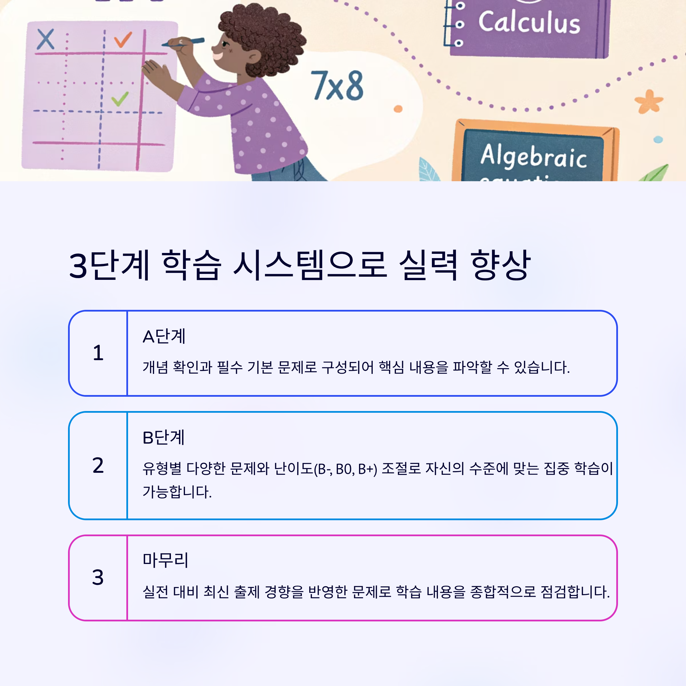 수학이 어렵게 느껴지는 학생들도 부담 없이 접근할 수 있습니다.