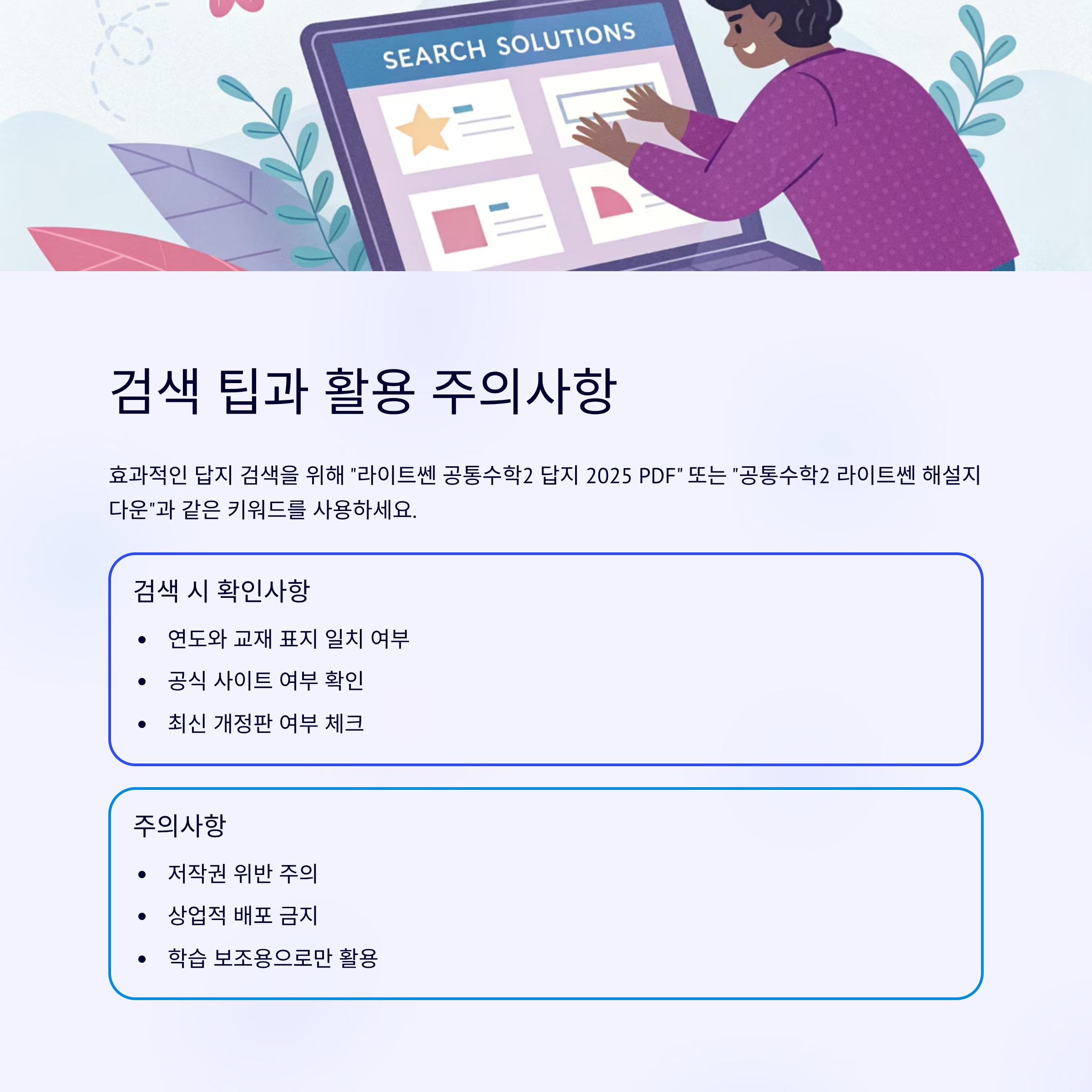 답지를 검색할 때는 “라이트쎈 공통수학2 답지 2025 PDF” 또는