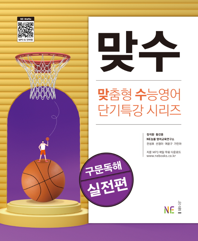 맞수 구문독해 실전편은 NE능률 수학교육연구소에서 출판한 수능영어 대비 구문독해 훈련서입니다. 이 책은 개인의 영어 실력에 맞춰 학습할 수 있는 수준별 구문독해 교재로, 핵심 구문을 다양한 지문과 문제로 학습하여 직독직해 능력을 향상시킵니다. 최신 수능 유형 독해에 적용할 수 있도록 구성되어 있어 수능 준비에 큰 도움을 줍니다.