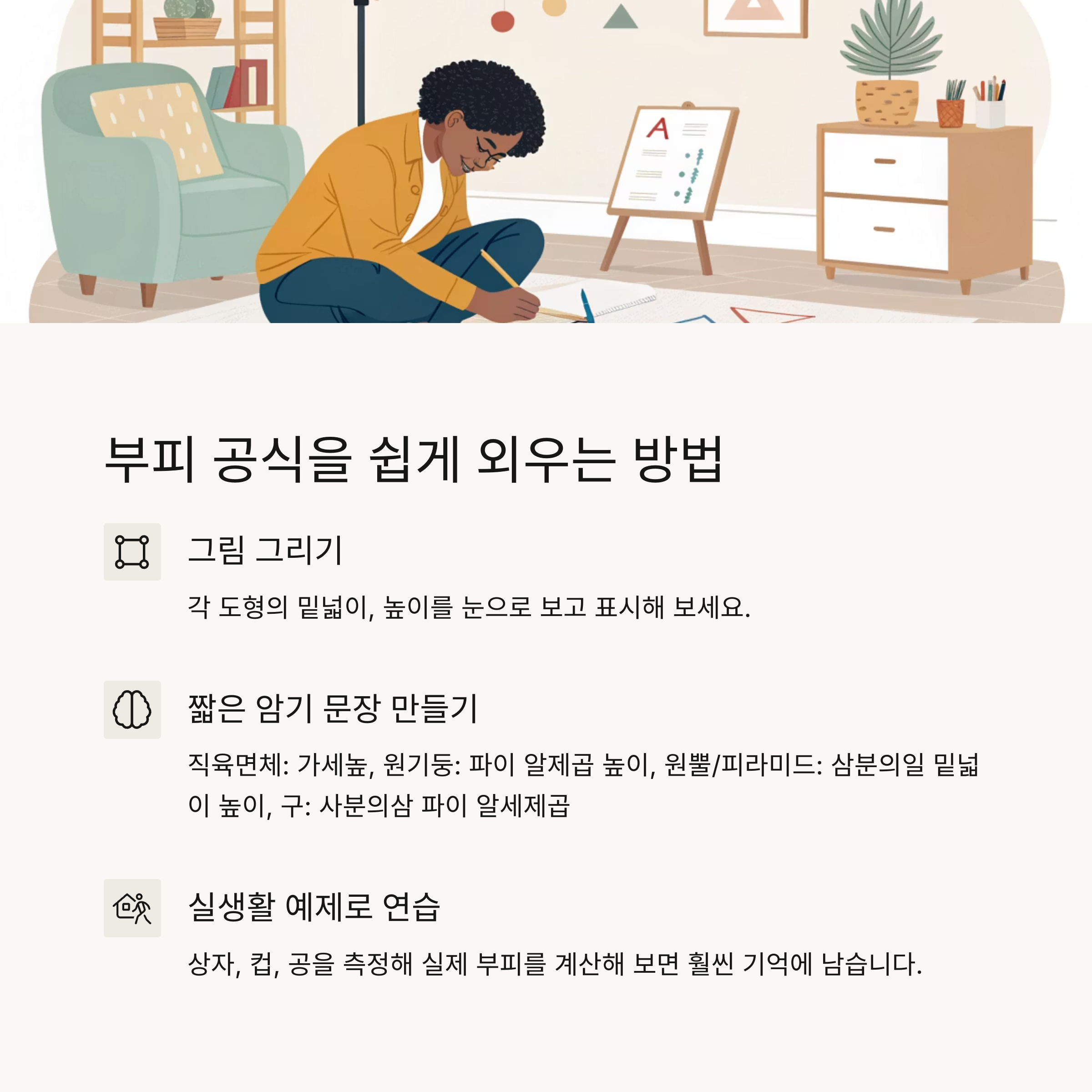 부피 구하는 공식은 수학 문제에서만 쓰이는 것이 아닙니다. 물건의 용량, 공간의 크기, 건축 재료 양 등 다양한 분야에서 실제로 사용됩니다. 각 도형의 특징과 공식을 잘 외워 두고 문제에 적용해 보세요. 부피 계산에 능숙해지면 수학 실력은 물론, 실생활에서 필요한 계산 능력도 높아집니다.