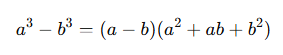 두 수의 세제곱의 차 역시 위와 같이 인수분해됩니다.