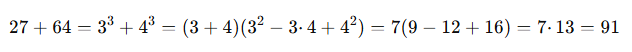 두 수의 세제곱의 합은 이처럼 인수분해할 수 있습니다.