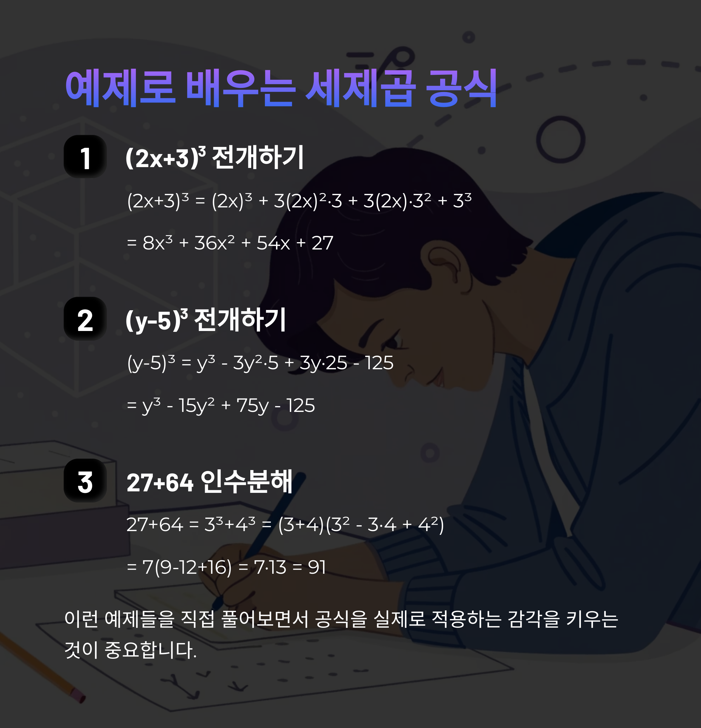 세제곱 곱셈공식 완벽 설명: (a + b)³, (a - b)³ 공식부터 응용까지