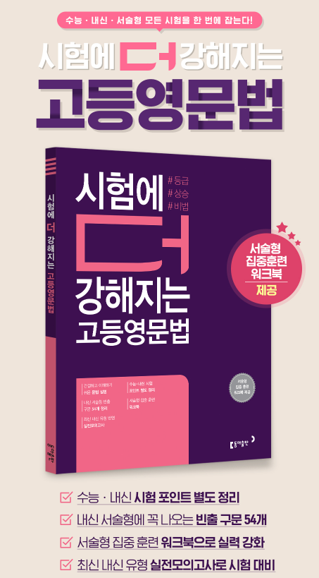 "시험에 더 강해지는 고등영문법"은 실제 수능 난이도 수준의 예문을 사용하여 어법 포인트를 학습합니다. 이를 통해 여러분은 현실적인 시험 경험을 통해 어법을 더 잘 이해할 수 있습니다.