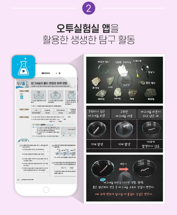 오투 3-1은 오투 속 탐구를 동영상으로 구성하여 '오투실험실'을 구현했습니다. 탐구과정부터 원리 설명, 마무리 퀴즈까지 동영상으로 쉽고 재미있게 학습할 수 있는 독특한 경험을 제공합니다.