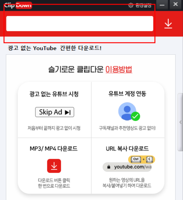 2. 클립다운 프로그램을 설치해 동영상을 다운로드.