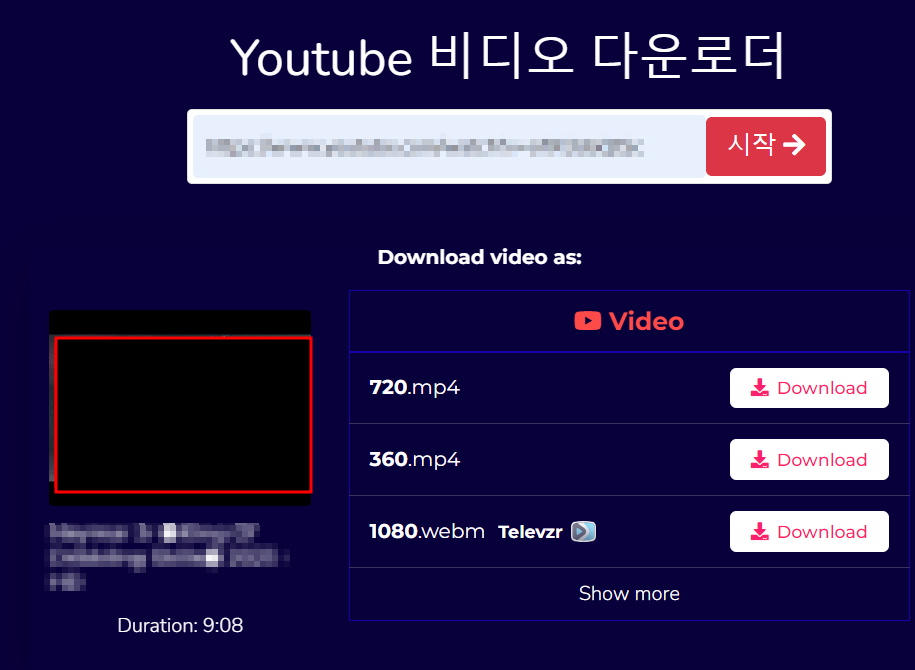 2. 사이트에 접속후 다운로드 받고자 하는 영상의 url 링크를 입력합니다.