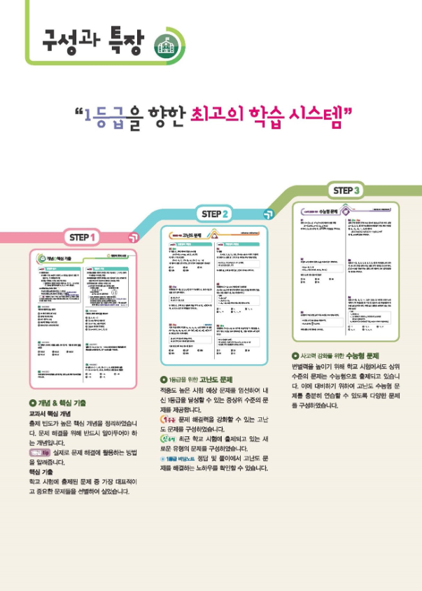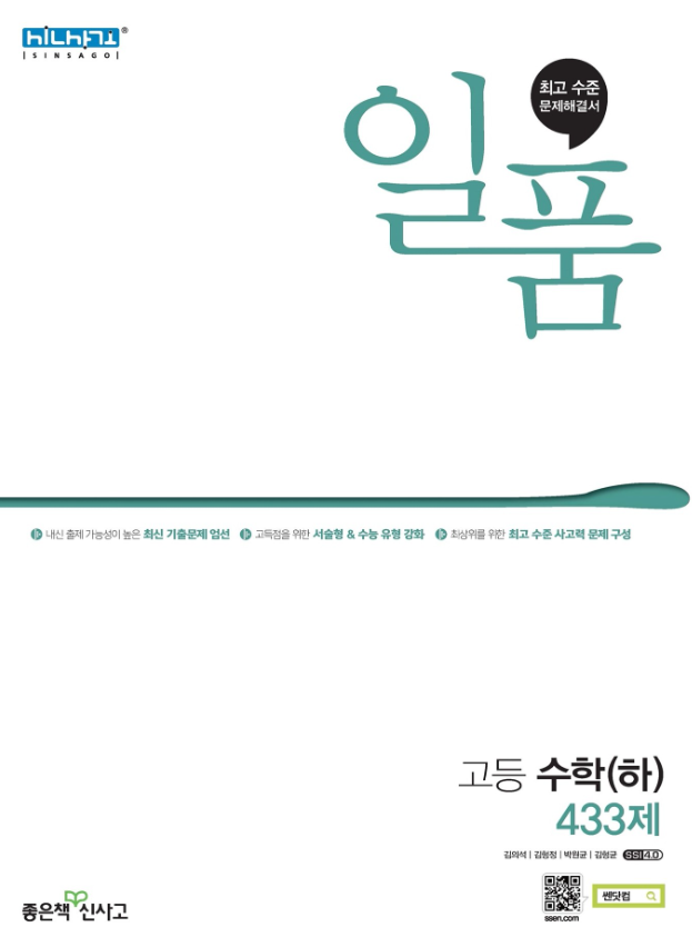 일품 수학 하 교재는 까다로운 내신 문제에 완벽히 대비하며, 고품격 고난도 문제를 풀어 수학을 완전히 정복할 수 있는 최고의 도서입니다. 오늘은 수학 학습에 있어서 꼭 필요한 도구인 '일품 수학 하'라는 책을 소개하려고 합니다. '일품'은 내신 만점 대비 및 고품격 문제 해결을 위한 구성과 까다로운 내신 문제에 완벽하게 대비할 수 있도록 구성되어 있습니다. 고품격 고난도 문제들을 풀어나가면서 수학을 정말로 마스터할 수 있게 도와줍니다. 내신 출제 가능성이 높은 최신 기출문제들이 엄선되어 있어, 핵심 개념을 정확히 이해하고 대표적이고 중요한 문제들을 다룰 수 있습니다. 이번 포스팅에서는 앞서 소개드린 '일품' 교재의 다른 특징들과 답지를 소개드리겠습니다.