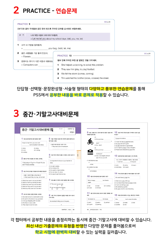 이 교재는 PSS 개념을 도입하여 학생들이 문제해결 능력을 단계별로 완전히 익힐 수 있도록 합니다. 단답형, 선택형, 문장완성형, 서술형 문제를 포함한 3000제와 중간, 기말고사 대비 문제 800제를 통해 학생들이 다양한 유형의 문제를 경험할 수 있습니다.