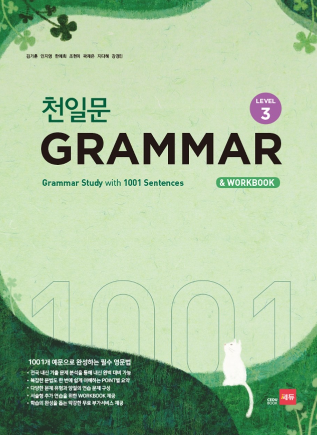 영문법, 이 단어만 들어도 복잡하게 느껴지시나요? 천일문 GRAMMAR Level 3는 1001개의 예문을 통해 자연스럽게 영문법을 습득할 수 있도록 구성된 책입니다. 문장을 통한 영문법 학습은 그동안 천일문 시리즈를 통해 많은 학생들에게 입증되어 왔습니다.
