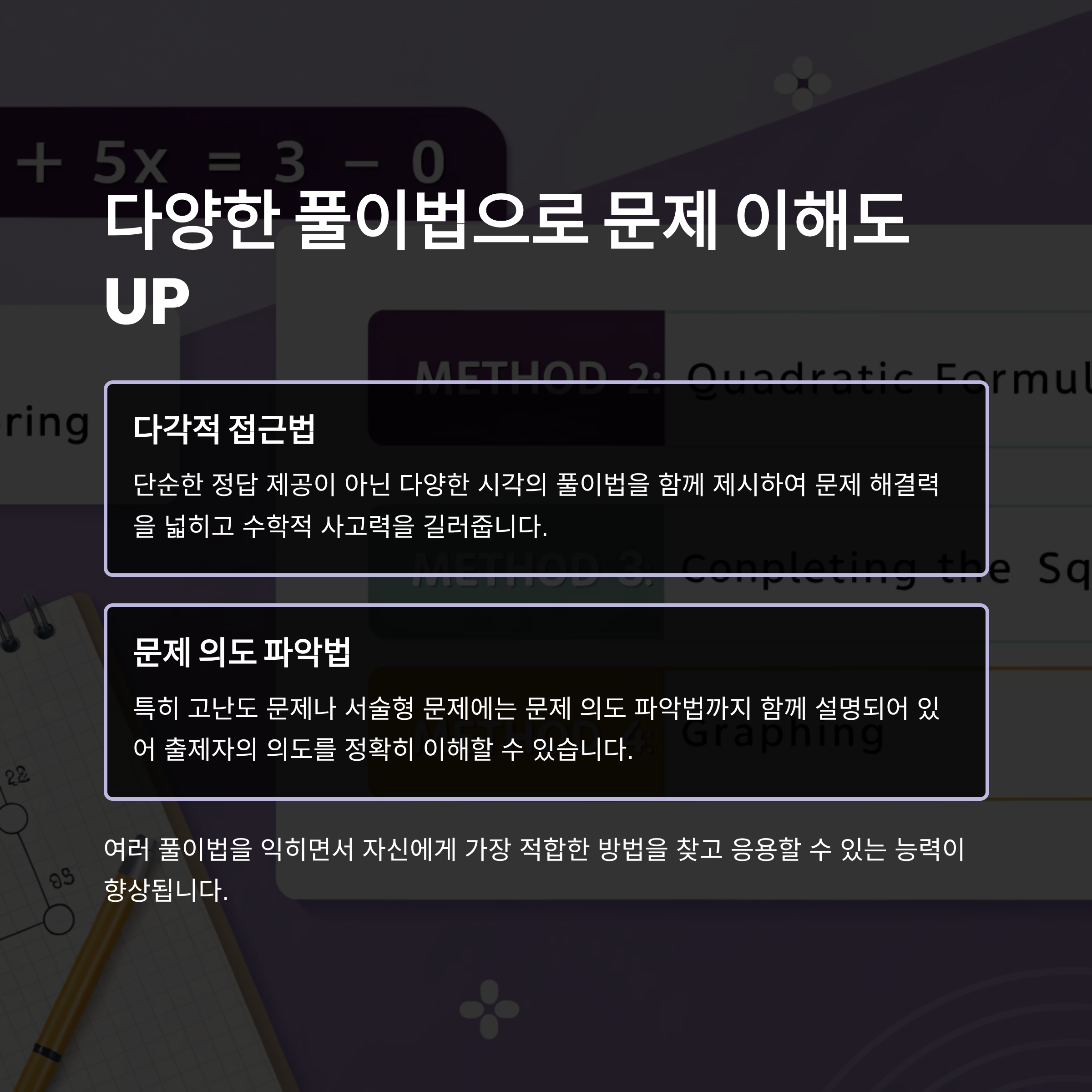 문제 해결력을 넓히고 수학적 사고력을 길러줍니다.