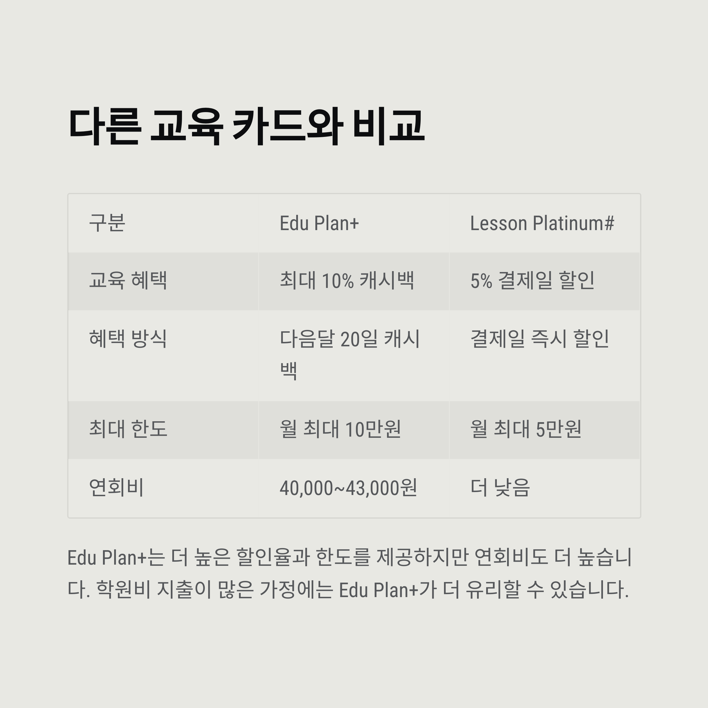 이러한 조건을 충족한다면, Edu Plan+는 명백한 '가성비 카드'입니다.