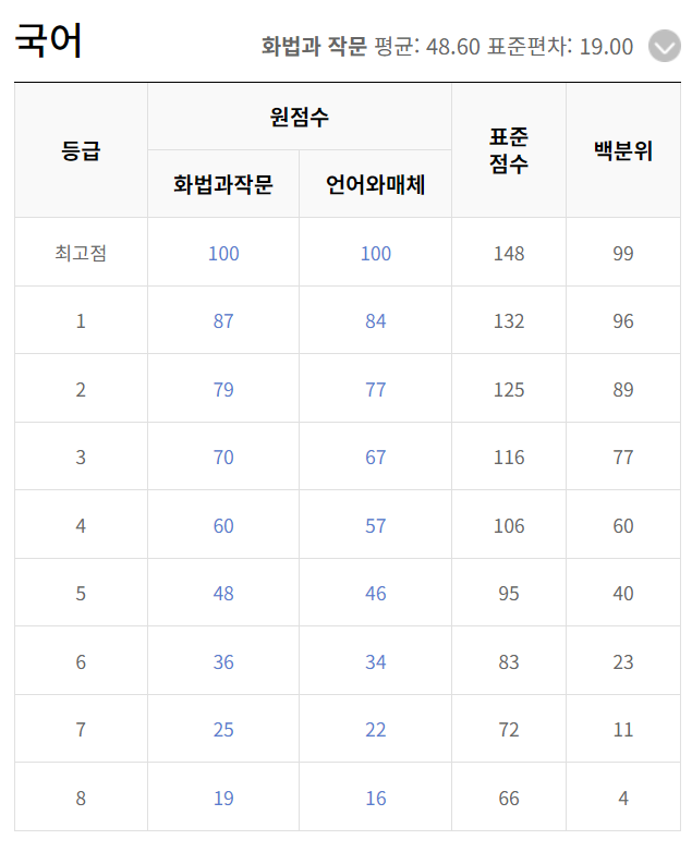 2024년 3월 고3 국어 모의고사 등급컷