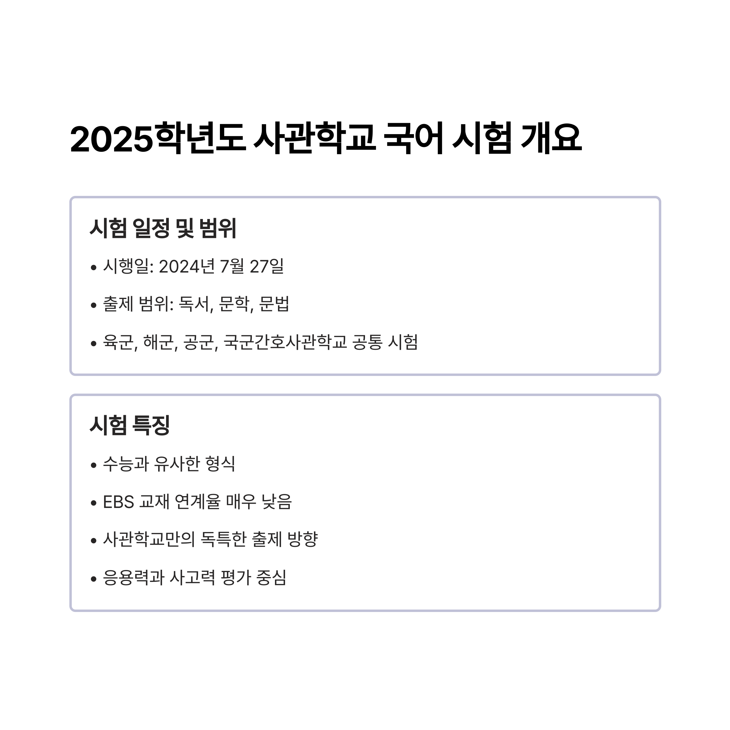 2025학년도 사관학교 국어 시험 개요