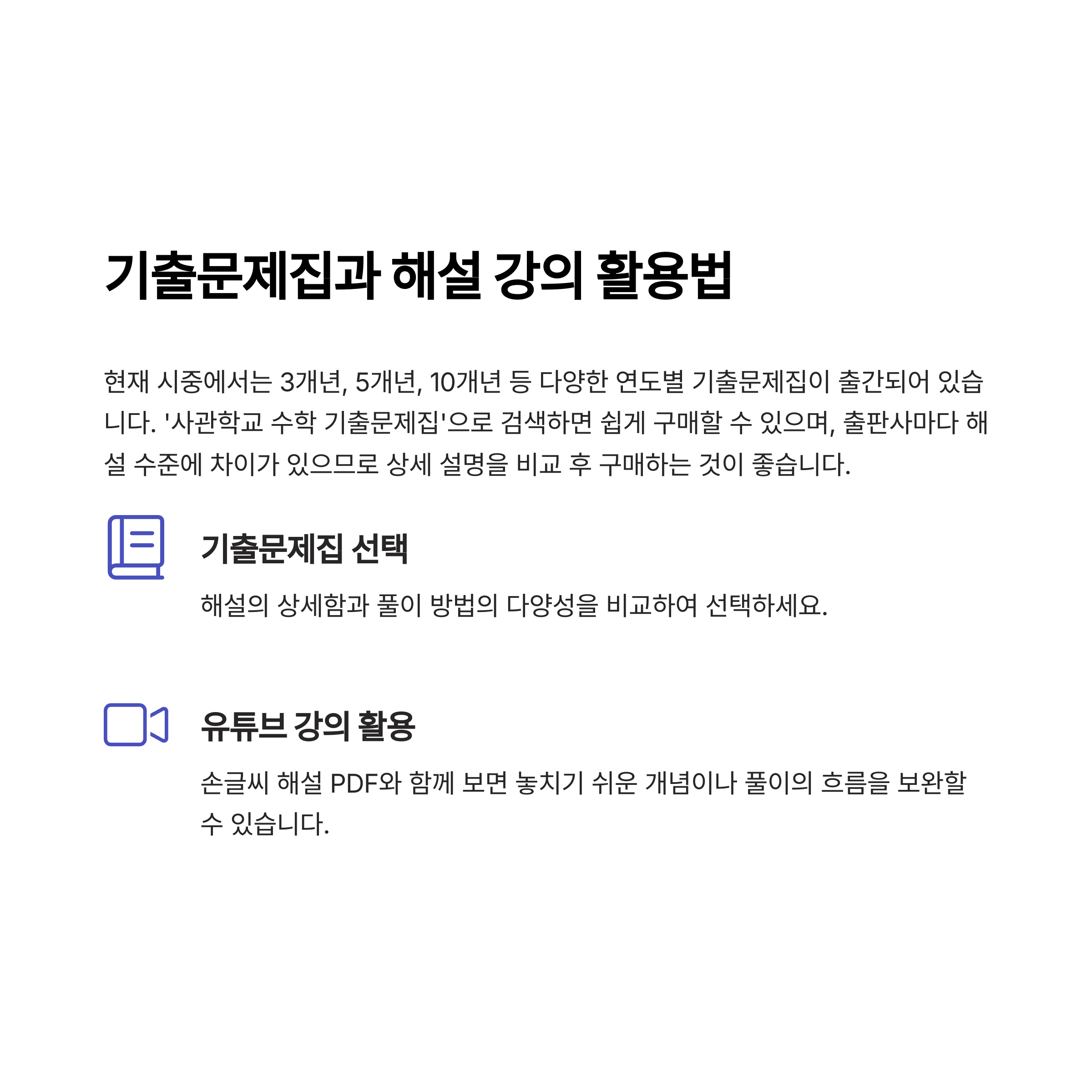 또한 유튜브 강의를 병행하면 혼자 공부할 때 놓치기 쉬운 개념이나 풀이의 흐름을 보완할 수 있습니다. 특히 손글씨 해설 PDF와 함께 보면 더욱 효과적입니다. 해설을 따라가면서 자신이 이해한 방식과 비교하고, 다른 접근법도 익혀보세요.