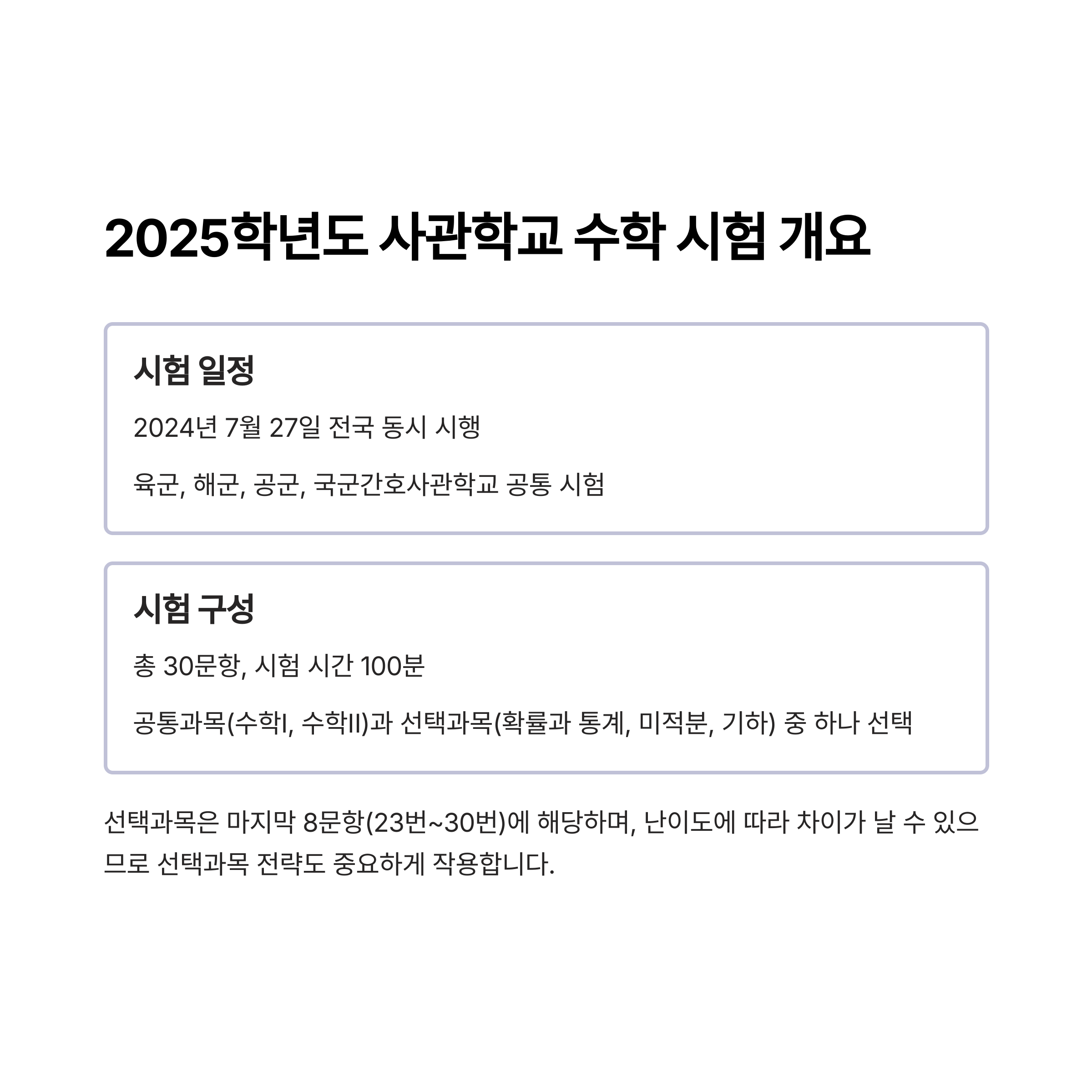 2025학년도 사관학교 수학 시험 개요