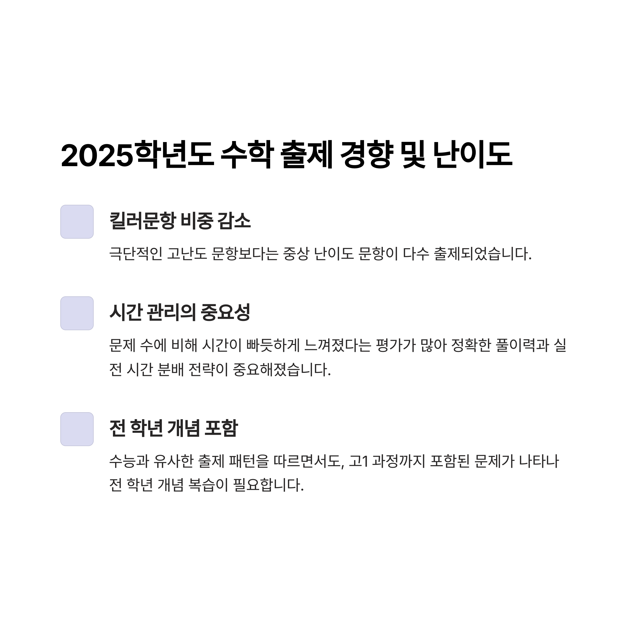 2025학년도 수학 출제 경향 및 난이도